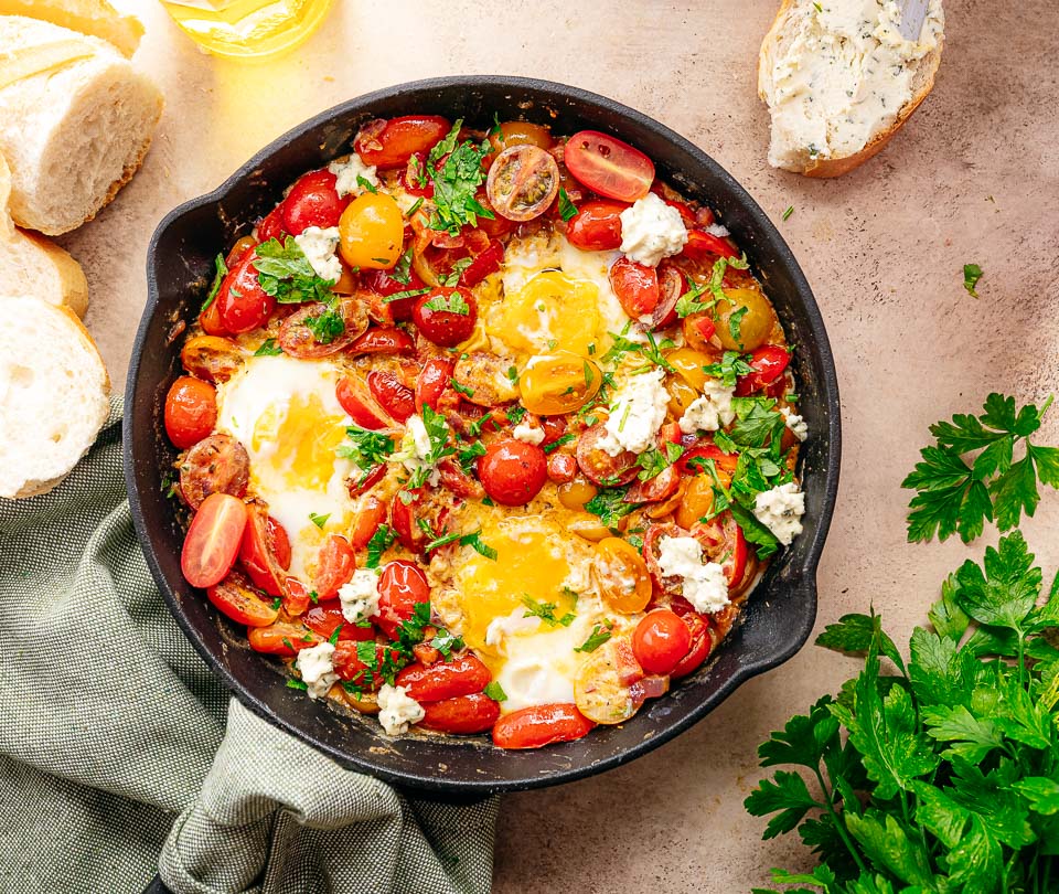 Fanan paradicsomos padlizsán, főtt tojással és tahini szósszal