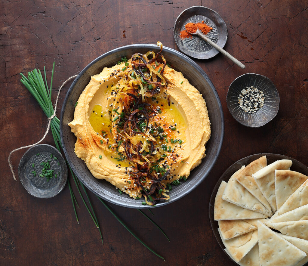 Hummusz csípős csicseriborsóval és tahini szósszal